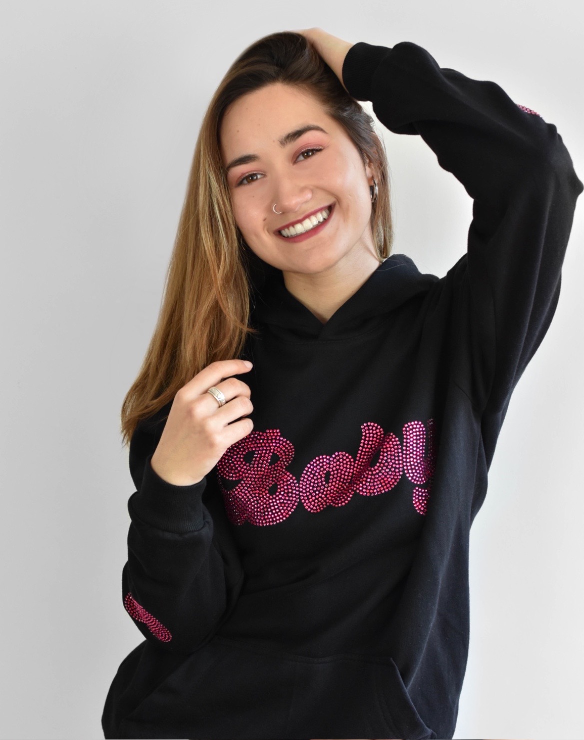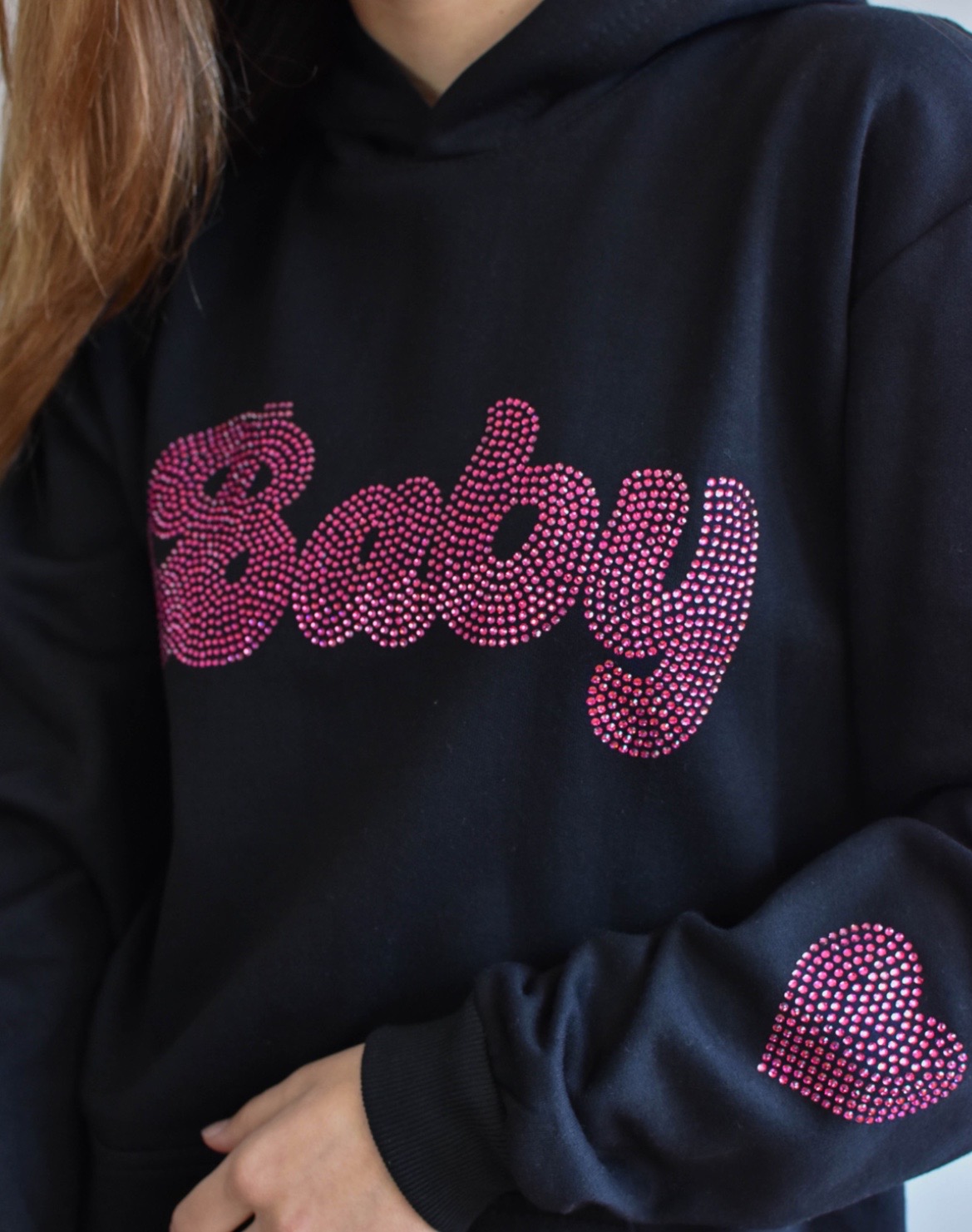 Polerón tipo canguro 100% algodón de la más alta calidad y estampado de pedrería de diamantes único en Chile, colocándolos one by one como obra de arte, dántote ese estilo auténtico que necesitas.
