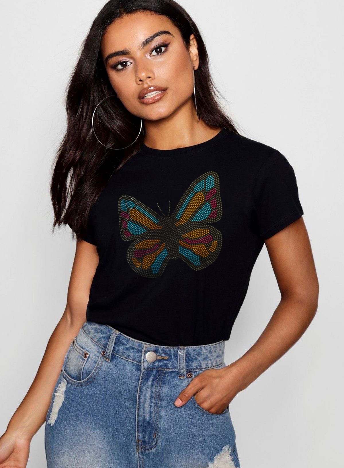 Polera manga corta 100% algodón de la más alta calidad y estampado de pedrería de diamantes único en Chile, colocándolos one by one como obra de arte, dántote ese estilo auténtico que necesitas.
