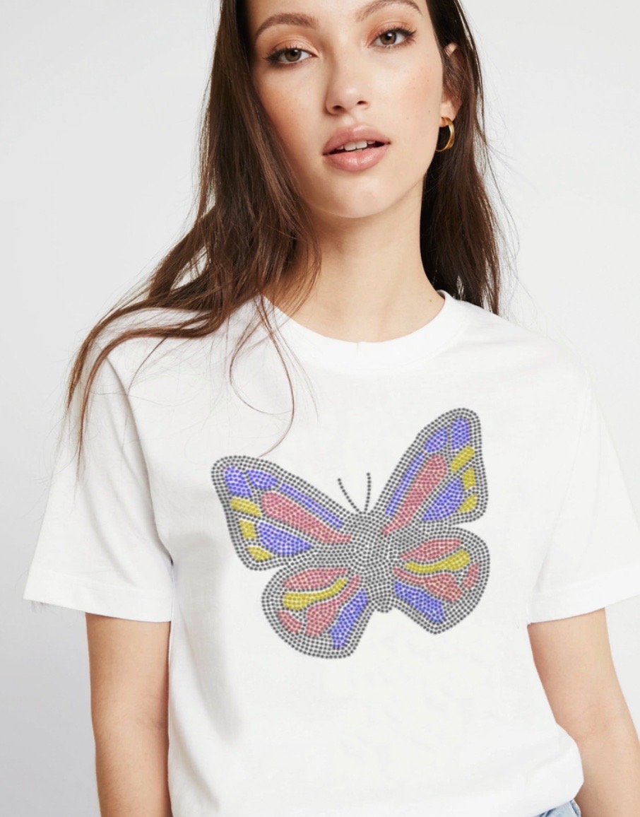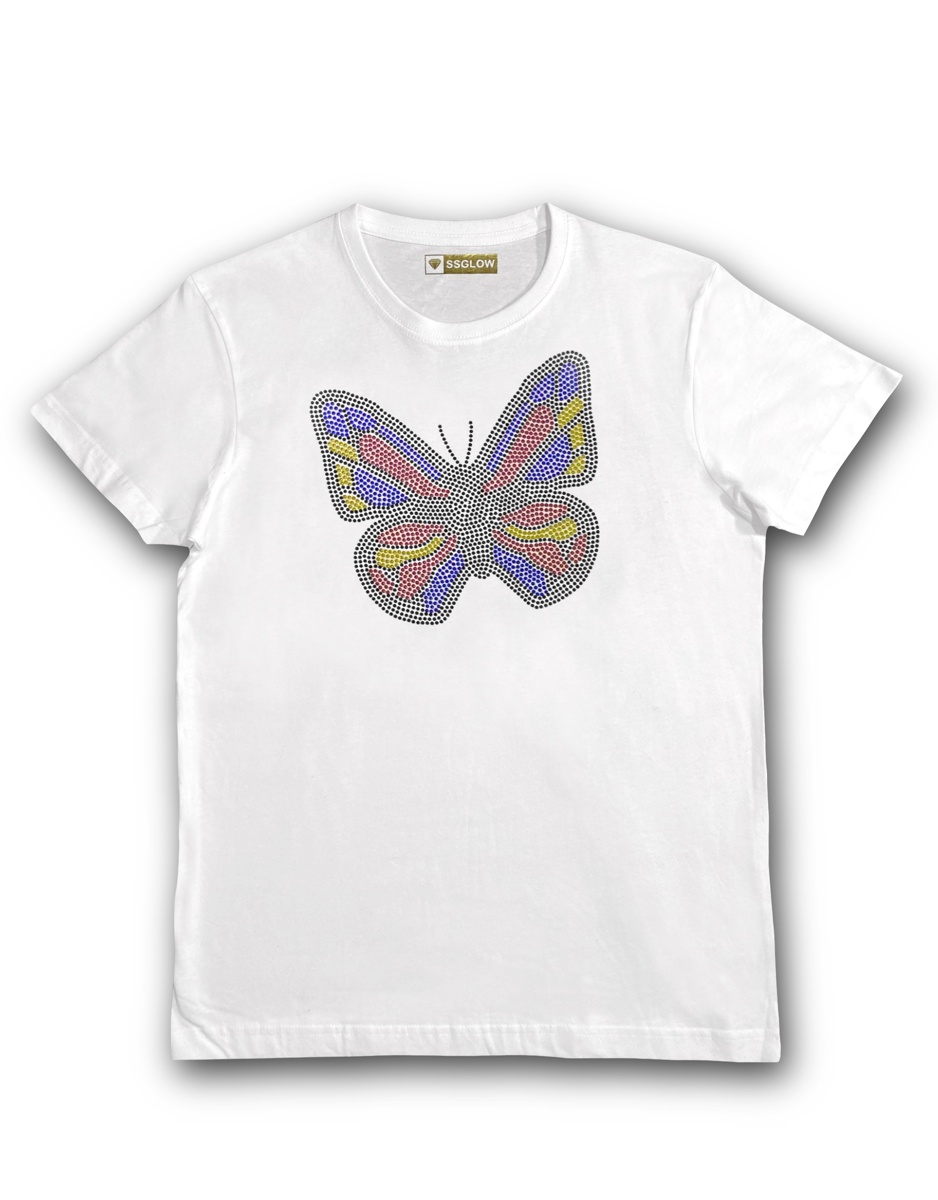 Polera manga corta 100% algodón de la más alta calidad y estampado de pedrería de diamantes único en Chile, colocándolos one by one como obra de arte, dántote ese estilo auténtico que necesitas.