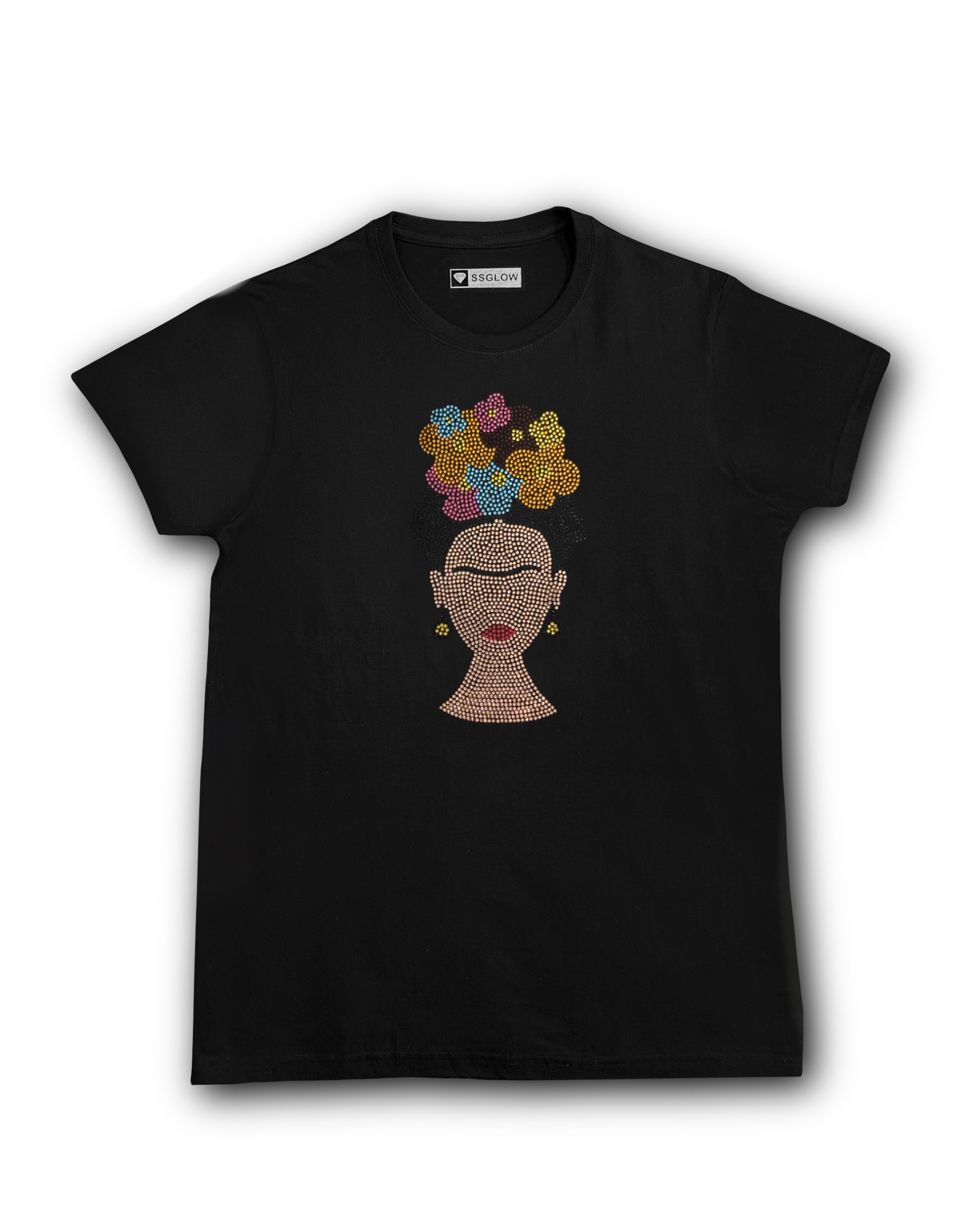 Polera manga corta 100% algodón de la más alta calidad y estampado de pedrería de diamantes único en Chile, colocándolos one by one como obra de arte, dántote ese estilo auténtico que necesitas.