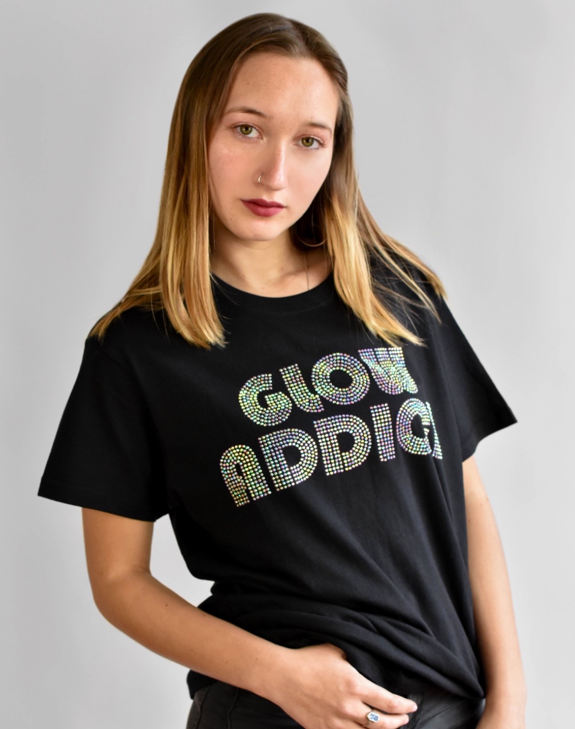 Polera manga corta 100% algodón de la más alta calidad y estampado de pedrería de diamantes único en Chile, colocándolos one by one como obra de arte, dántote ese estilo auténtico que necesitas.