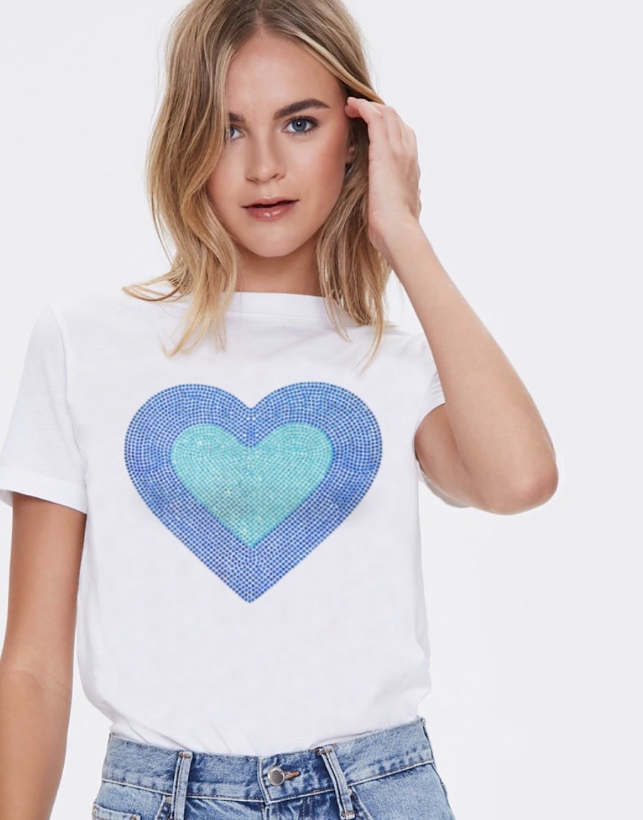 Polera manga corta blanca corazón 2 tonos