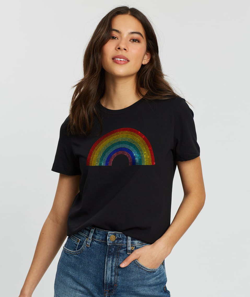 Polera manga corta negra arcoiris