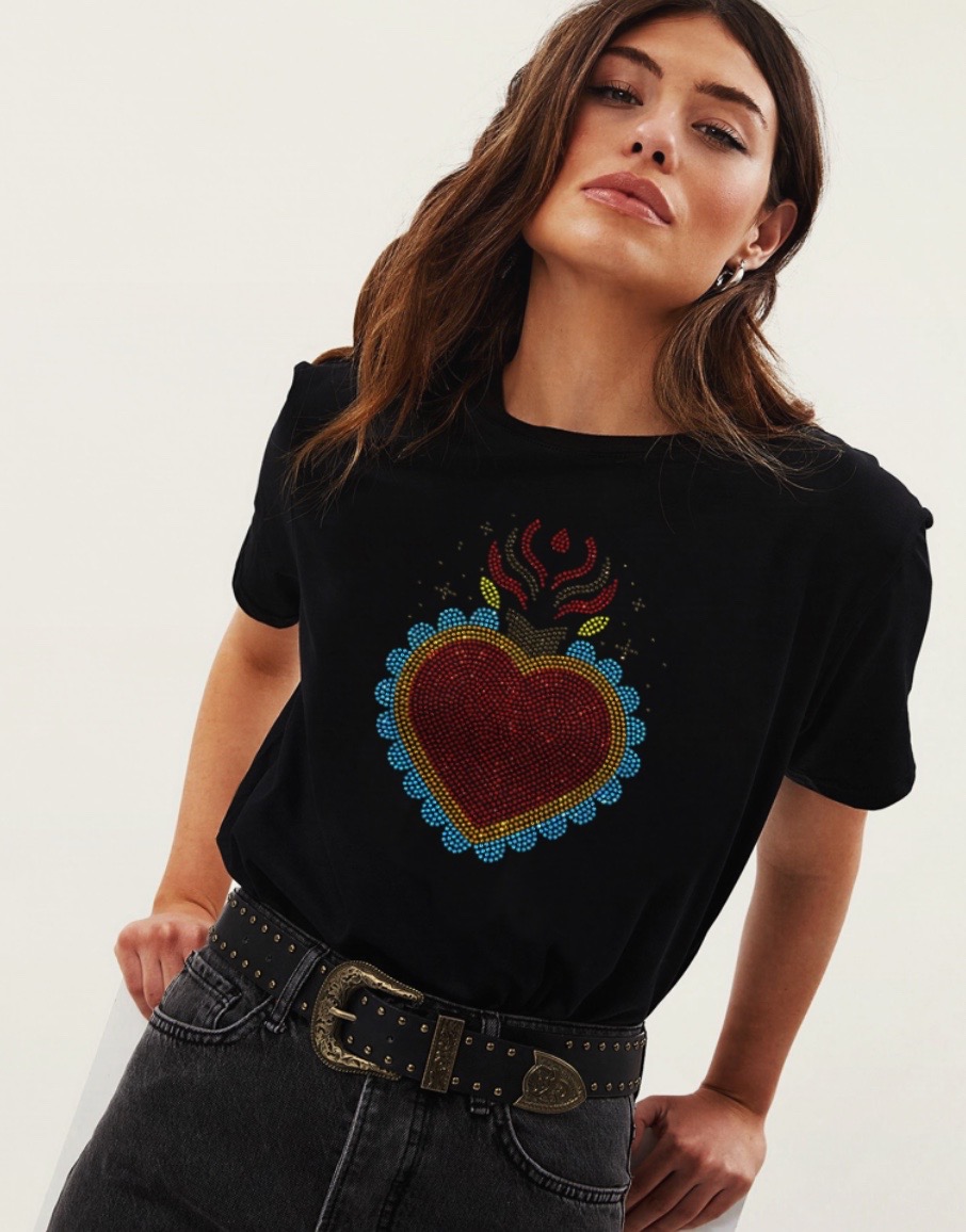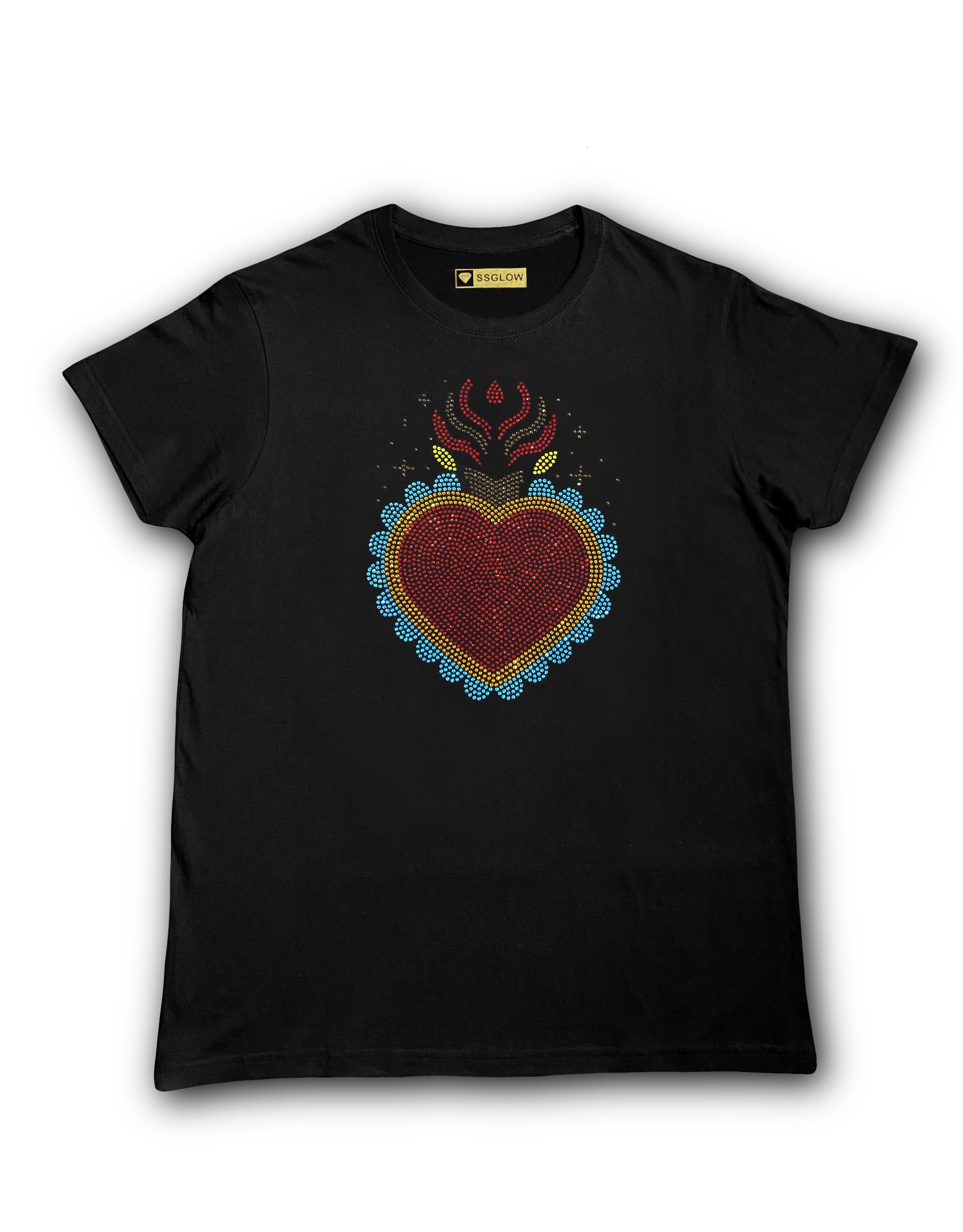 Polera manga corta 100% algodón de la más alta calidad y estampado de pedrería de diamantes único en Chile, colocándolos one by one como obra de arte, dántote ese estilo auténtico que necesitas.