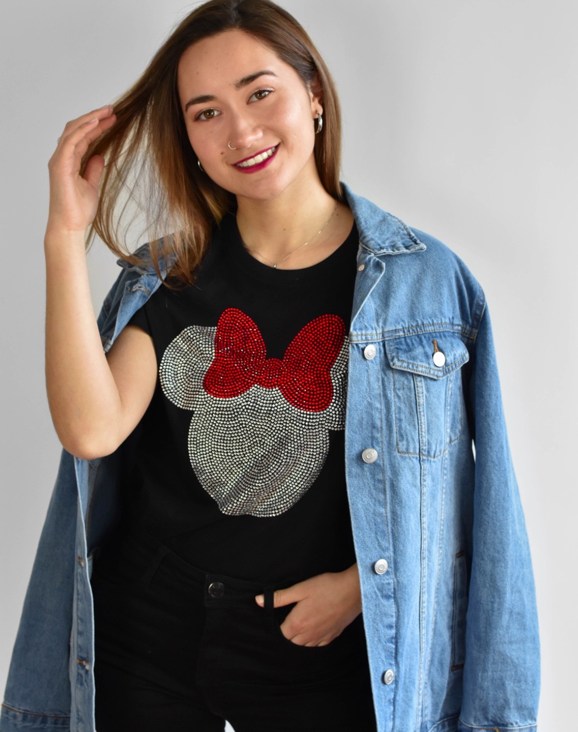 Polera manga corta 100% algodón de la más alta calidad y estampado de pedrería de diamantes único en Chile, colocándolos one by one como obra de arte, dántote ese estilo auténtico que necesitas.
